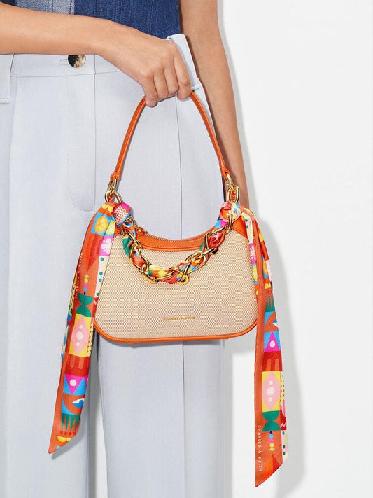 Charles & Keith Alcott Scarf Handle Canvas Bag – Orange