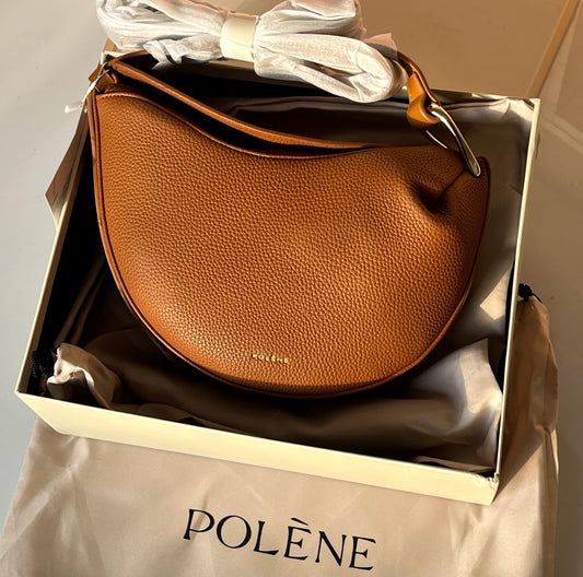 POLÈNE Tonca – Textured Cognac Shoulder Bag