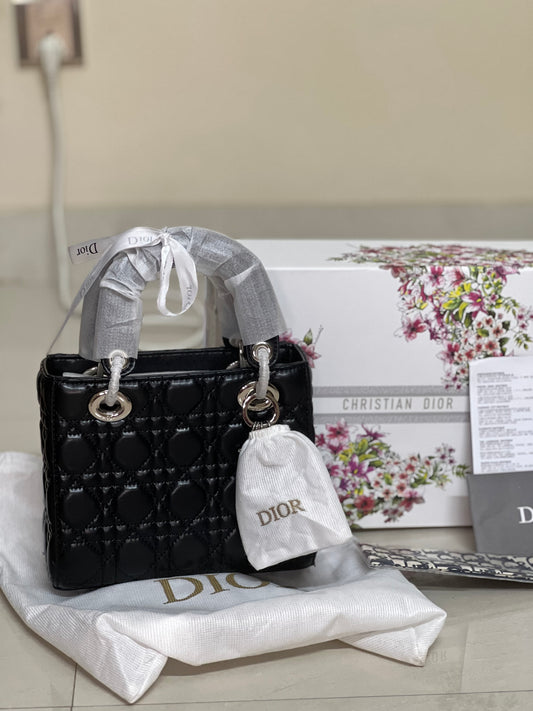 Lady Dior Black Cannage Lambskin Handbag – Silver Charm Detail