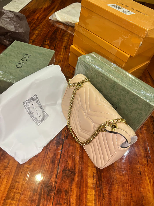 GUCCI GG Marmont Half-Moon Shoulder Bag – Chevron Leather