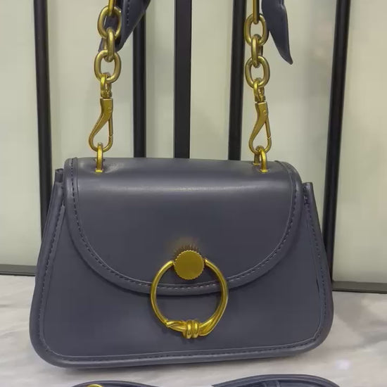 Chic and compact, the Charles & Keith Joelle Ring Push-Lock Bag is perfect for elevating any outfit. Crafted from smooth faux leather, it features a stylish push-lock closure with antique gold hardware, a removable chain handle, and an adjustable long strap for versatile wear. Inside, find a zip pocket and a slip pocket to keep essentials organized. With its sleek dimensions (20.5 cm W × 12 cm H × 8.5 cm D) and included box, this bag is the perfect blend of elegance and practicality.