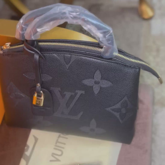 The Petite Palais Noir keeps the same sophisticated structure and oversized embossed Monogram look — but in high-quality PU leather. It has a firm, polished shape with double top handles for a sharper hand-carry style, and a removable, adjustable strap for easy shoulder wear.