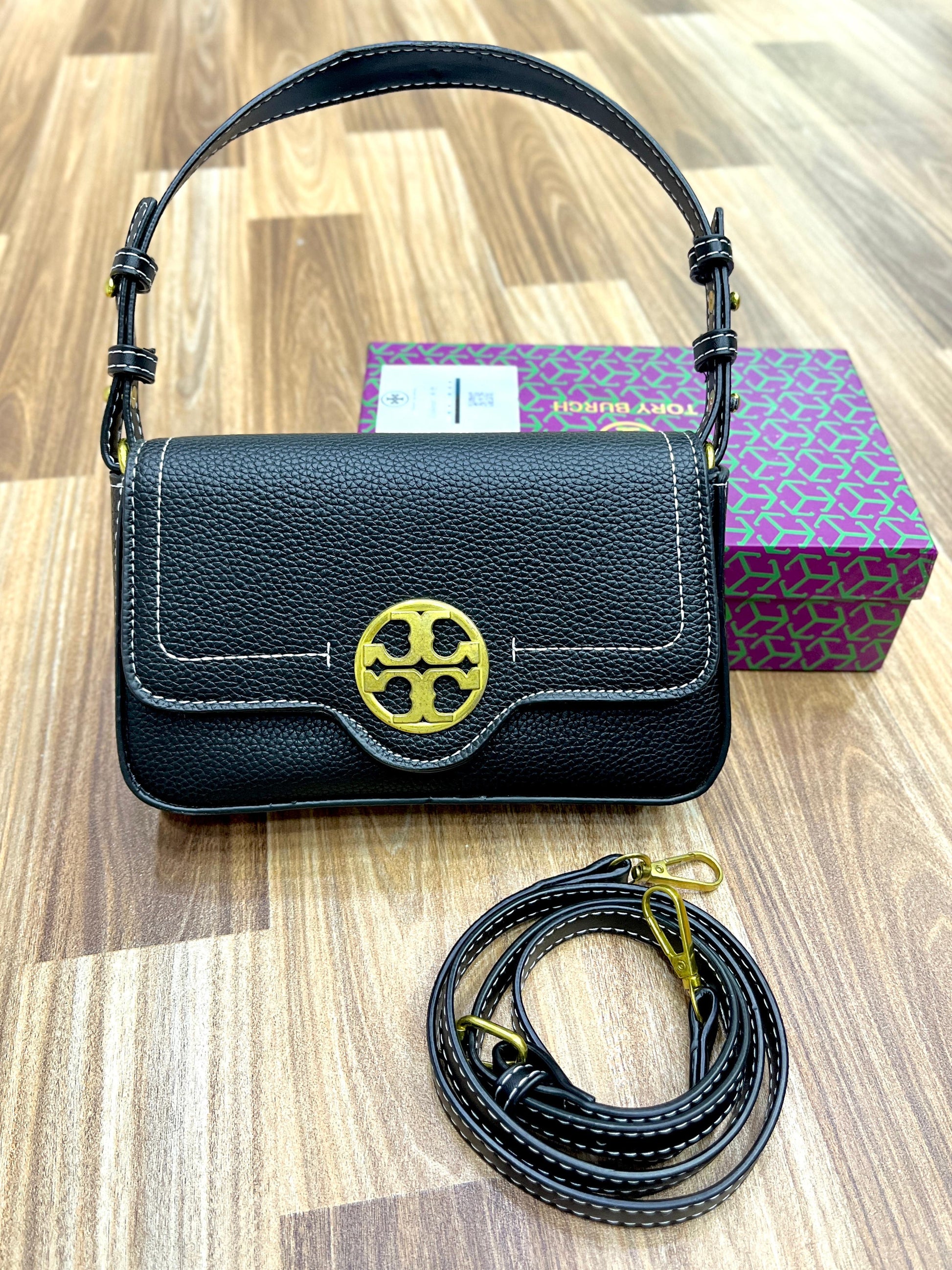 Chic, compact, and effortlessly elegant — the Tory Burch Felix Mini Flap Shoulder Bag is your go-to for refined everyday style. Designed with the signature Double T monogram, this piece features a magnetic flap closure, gold-tone hardware, and both removable handle and long shoulder straps for versatile wear. Its 8 x 4.5 x 3-inch frame perfectly balances function and fashion, making it ideal for day-to-night looks. Comes complete with a branded box and dust bag for a polished finish.